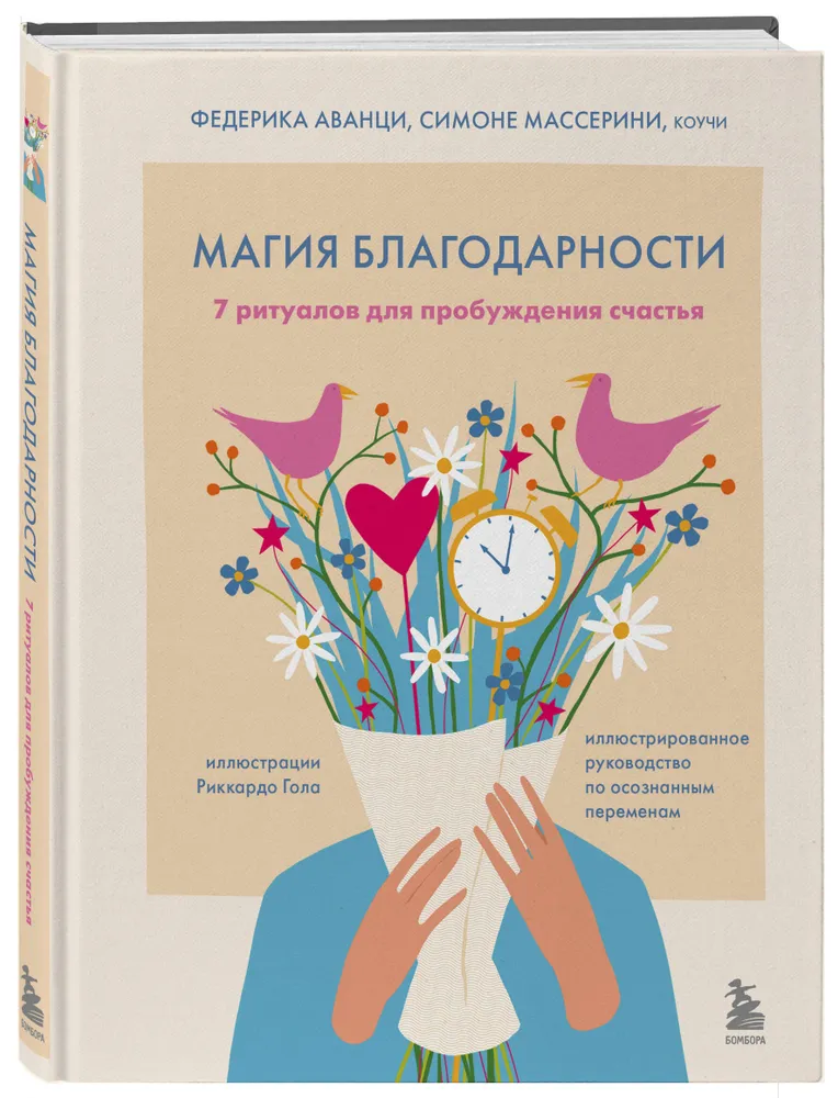 Авторы проведут вас через 7 значимых этапов дня — от первого пробуждения до последнего взгляда на ночное небо. Для каждого — свой небольшой ритуал благодарности. Это не теория и не чек-лист. Это мягкое приглашение замедлиться, прислушаться к себе и научиться видеть чудо в самых обыденных моментах. На ее страницах — философия йоги и буддизма, личный опыт, а также живые, метафоричные иллюстрации художника и музыканта Риккардо Гола. Прислушайтесь к себе — и вы поймете: благодарность — это не просто чувство. Это способ жить.