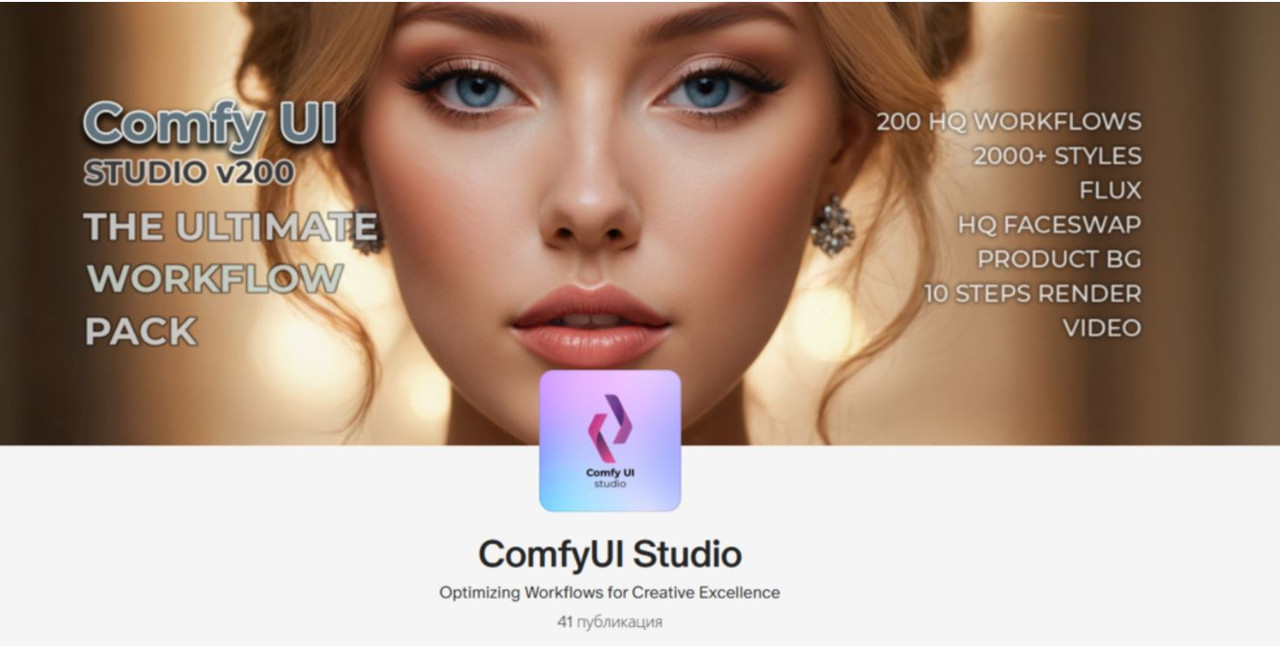 Получите доступ ко всему, что я создаю, включая ComfyUI Studio portable (41 ГБ). Этот пакет содержит более 270 предустановленных workflow, автоматическую загрузку моделей и ежедневные обновления, чтобы все работало гладко.
